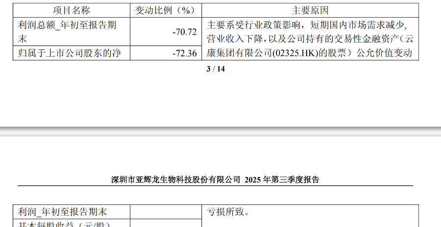 三季报显示,2025年前三季度,亚辉龙实现营业收入12.87亿元,同比下滑7.69%;归属于上市公司股东的净利润6042.09万元,同比下滑72.36%。