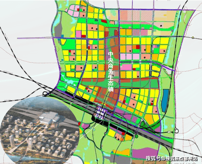 十字商务双轴:构建东西、南北十字双商务轴,拟引进综合商业、高端酒店、总部经济等商务服务产业,沿轴线布置各功能组团,组团规划邻里中心,构建区域15分钟生活圈,260米超高建筑打造区域新地标