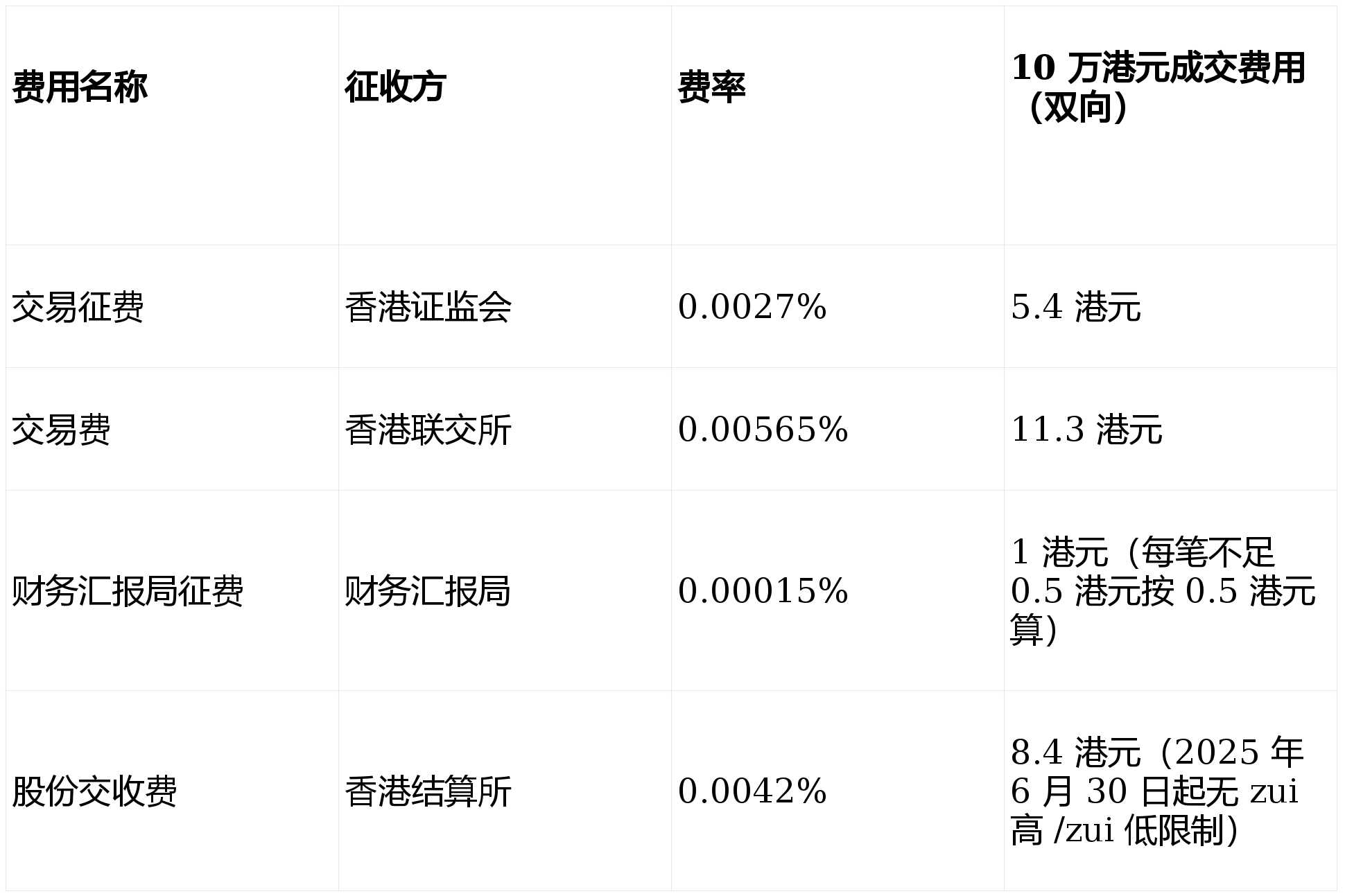 其实港股通费用并不复杂,抓住 “双向收取” 核心,理清印花税、佣金、规费和证券组合费,就能轻松算清成本。搞懂这些,投资港股通时能更从容,少花冤枉钱。