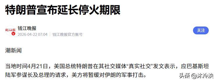 巴基斯坦好心斡旋,4月7日促成两周停火,4月21日又请求延长,可伊朗不傻,美国不解除封锁,谈什么都是空话。
