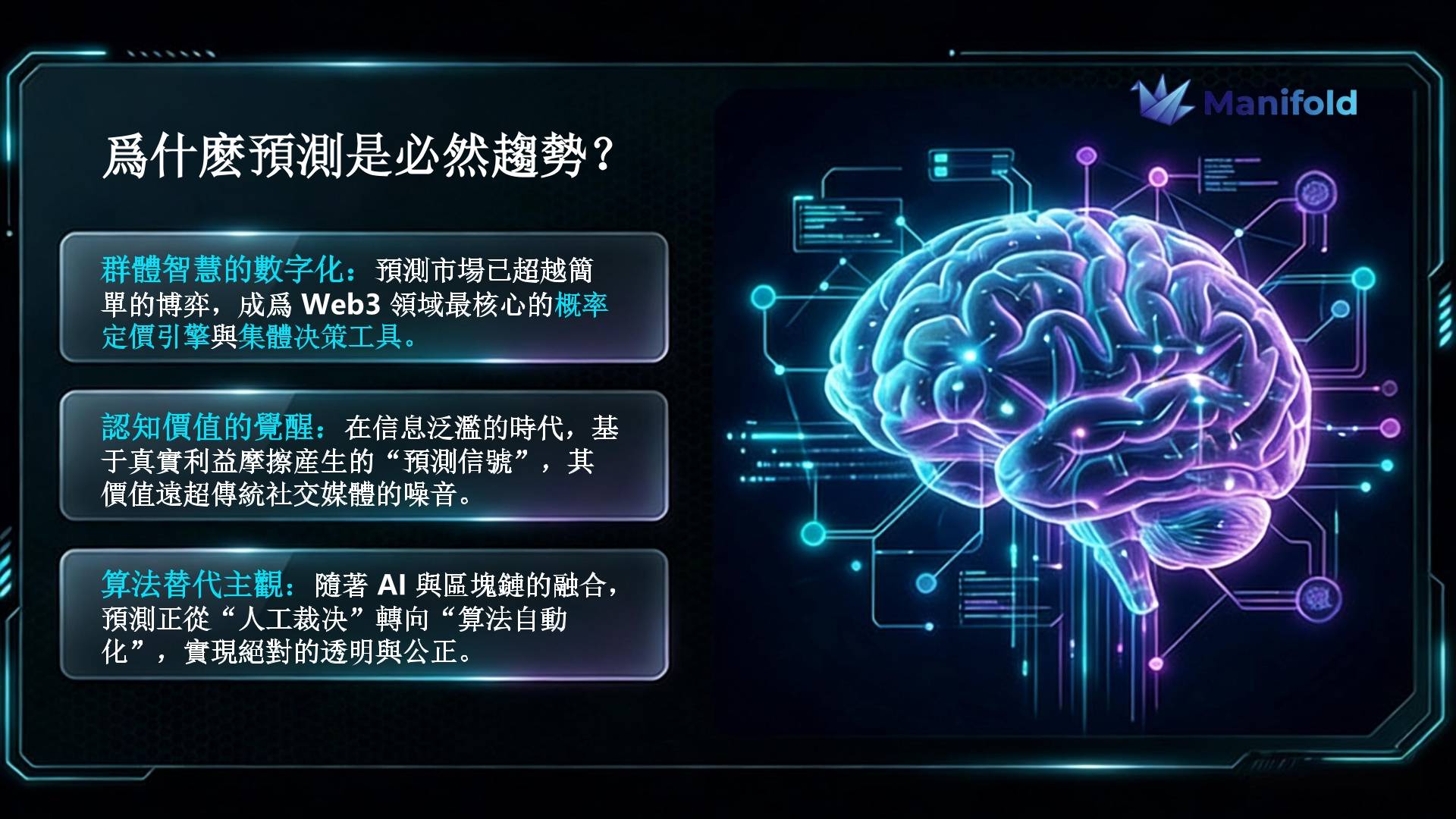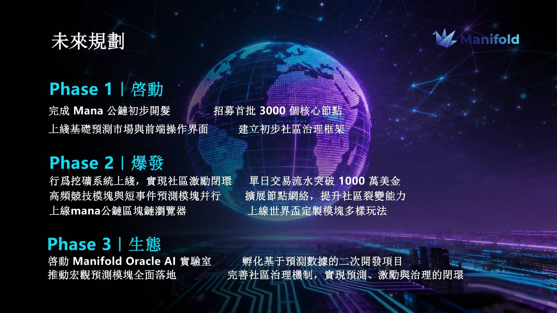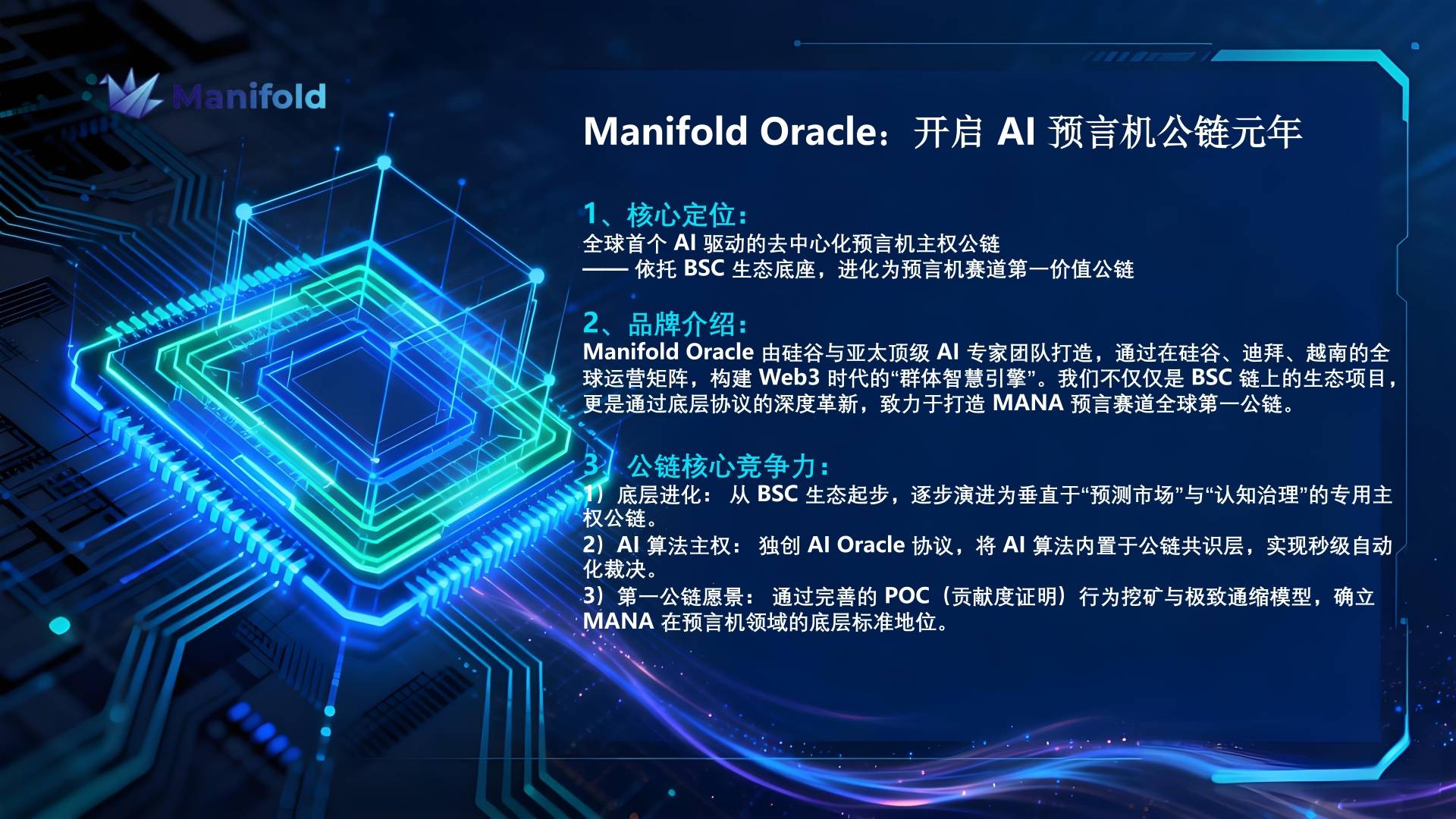 一 预定义行业标准发布。输出一套完善的分布式预言机与认知裁决标准草案。邀请行业媒体参与研讨,将 Manifold 的技术架构打造为行业公认的认知锚点。